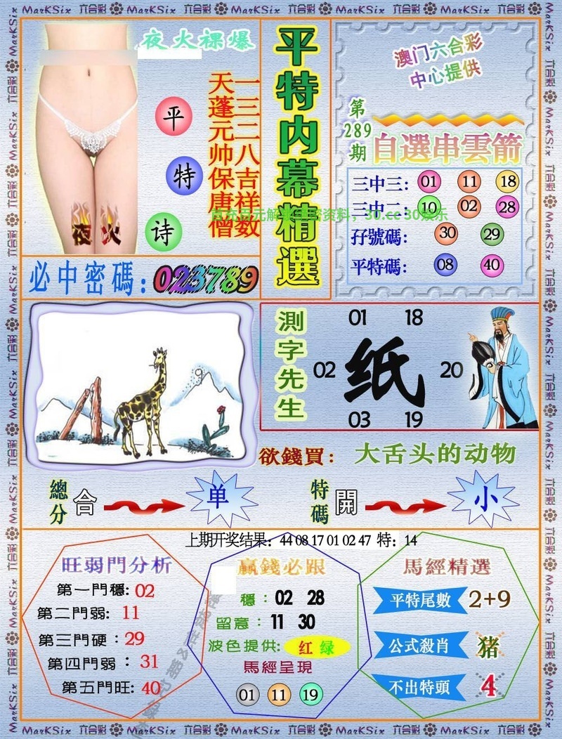 289期:【前前后后】【前肖前肖】开:鼠42中 |